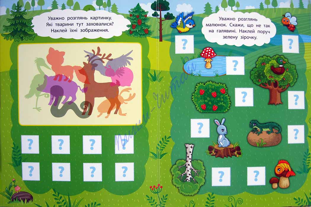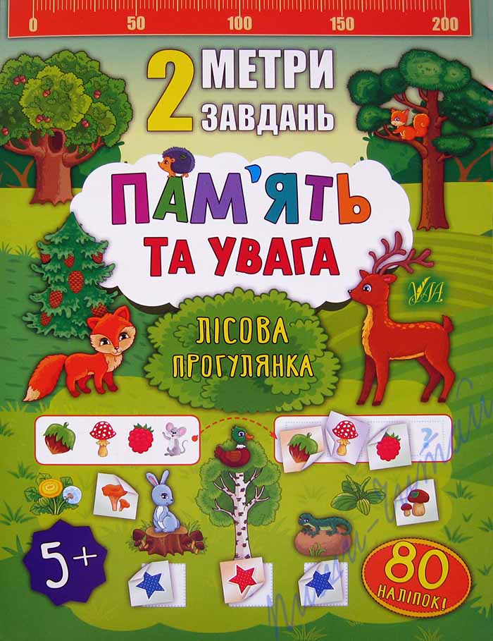 Акция! Цена снижена!!! Книжки серии «2 метри завдань» - отличный способ с пользой провести свободное время, помочь малышу легко и просто овладеть новыми знаниями, научить усидчивости и аккуратности. Большое количество разнообразных заданий, яркие иллюстрации, наклейки точно понравятся не только Вашему ребенку, а и его друзьям – ведь формат книжки-раскладушки как нельзя лучше подойдет для небольшой компании! Книжку можно развернуть на полу или на большом столе и играть всем вместе: в развернутом виде длина книжечки около 1м; а потом перевернуть и продолжить решать задачки! С книжкой «Пам'ять та увага. Лісова прогулянка» юные любители отдыха в лесу поупражняются в решении задачек на память и внимание: узнать обитателей леса по их теням; по картинкам определить, чего не может быть; найти отличия между двумя картинками на одной странице и на разных страницах, не подглядывая; найти ошибки в иллюстрациях к известным сказкам; определить и отобразить закономерность; рассмотреть картинки и, закрыв их, ответить на вопросы; прочитать слова на одной странице и, перевернув ее и не подсматривая, наклеить соответствующие картинки на другой странице. Попробуйте, и Вы очень скоро убедитесь, какие же это интересные и полезные книжечки!