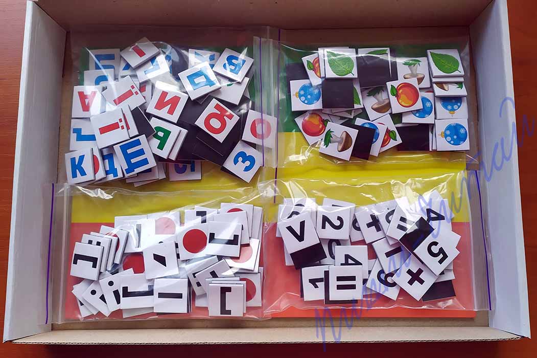 Дидактичний матеріал призначений для навчання школярів в початкових школах, в центрах розвитку та вдома. Доповнює і реалізує навчання школярів за будь-якою програмою, сприяє швидкому запам’ятовуванню, дає можливість кожному учню самостійно виконувати завдання і відтворювати весь навчальний матеріал, який вчитель за допомогою демонстраційних карток пояснює на дошці. Кожна картка набору на магнітній основі (навчальний магніт), дуже легка за вагою, приємна на дотик, безпечна для дитини. Навчальні магніти мають товщину 3мм і розмір 24*24мм, тому з ними дуже зручно працювати: їх легко можна брати, перекладати, знімати з магнітної дошки, складати в коробку тощо. У комплект роздаткового дидактичного матеріалу входить: магнітно-маркерна дошка (1шт), набір магнітних карток українського алфавіту (80шт), набір карток цифр і математичних знаків (32шт), один набір лічильного матеріалу (на вибір №1,№2 або №5, 40шт), набір карток фонетичного розбору (звукового аналізу) слова (45шт). Всього в наборі 197 навчальні магнітні картки (навчальні магніти). Комплект упакований в коробку з щільного картону розміром 36*25*5см. Коробка легко і надійно закривається, її можна підписати. Набір можна комплектувати за Вашим бажанням: наприклад, додати ще один або декілька комплектів лічильного матеріалу, набір «склад числа», набір «розбір речення», магнітні картки англійського алфавіту і знаків англійської транскрипції, в такому випадку ціна набору розраховується індивідуально. Зробіть навчання школярів цікавим, доступним і легким. З таким набором це під силу не тільки досвідченим учителям, але й турботливим батькам!