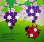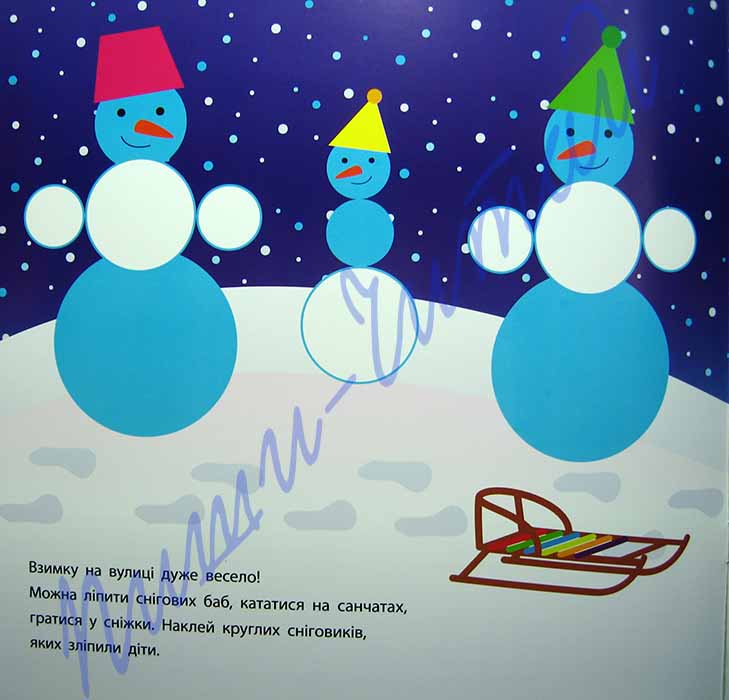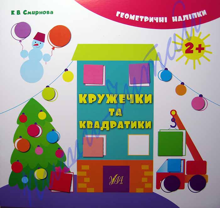 «Геометричні наліпки» – серия очень красивых книжек для малышей от 2-х лет. Яркие красочные картинки следует дополнить наклейками различных геометрических форм. Выполняя несложные и веселые задания детка легко запомнит названия фигур, научится узнавать их на рисунках и среди окружающих предметов, различать по цвету и форме. Задания в книжке – на украинском языке. Обратите внимание, что на картинках контур недостающей фигуры нарисован тем же цветом, что и соответствующая наклейка. В книжке «Кружечки та квадратики» клеим квадратные и круглые наклейки разных цветов и размеров на картинки: игрушечные кубики, снеговики, елочные шары,окна в доме, виноград, яблоки, подушки и светильник (всего 48 наклеек). Желаем успехов!
