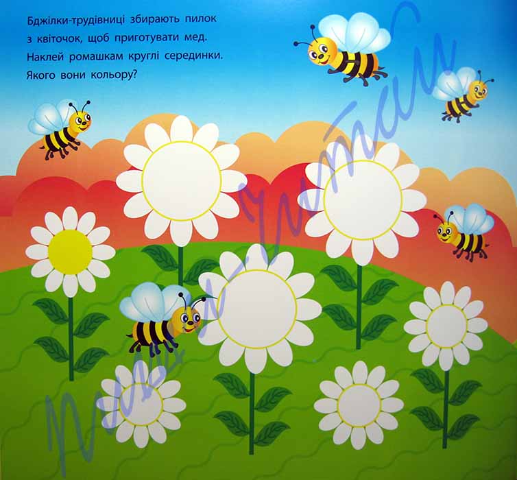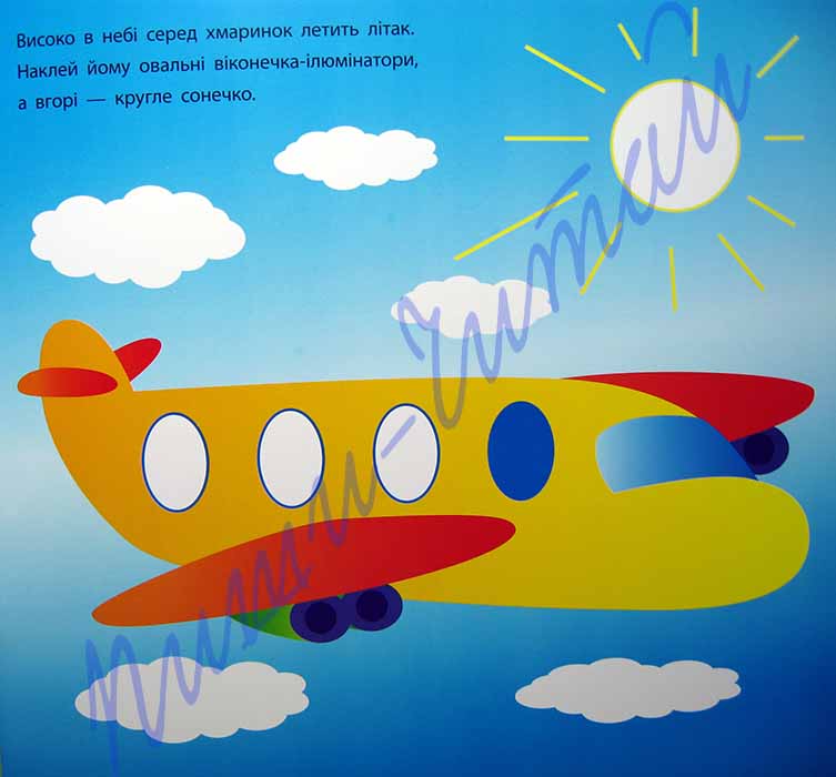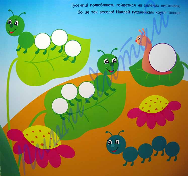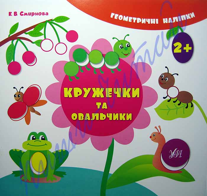 «Геометричні наліпки» – серия очень красивых книжек для малышей от 2-х лет. Яркие красочные картинки следует дополнить наклейками различных геометрических форм. Выполняя несложные и веселые задания детка легко запомнит названия фигур, научится узнавать их на рисунках и среди окружающих предметов, различать по цвету и форме. Задания в книжке – на украинском языке. Обратите внимание, что на картинках контур недостающей фигуры нарисован тем же цветом, что и соответствующая наклейка. В книжке «Кружечки та овальчики» клеим круглые и овальные наклейки разных цветов и размеров на картинки: иллюминаторы самолета, вишни и сливы, пузики у лягушек, крылышки стрекоз, лепестки цветов, домики улиток, гусеницы, цветы на поляне (всего 46 наклеек). Желаем успехов!