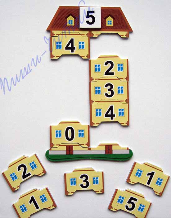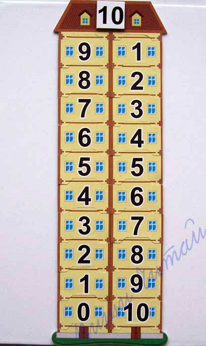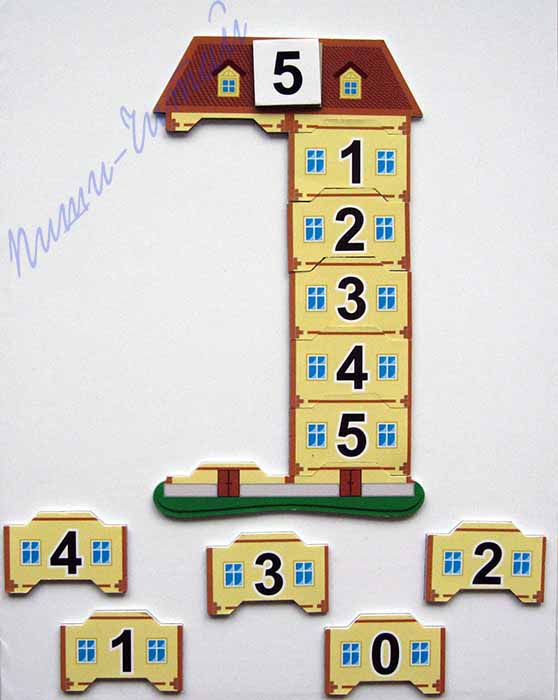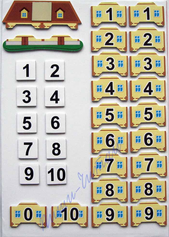 Дидактичний матеріал призначений для навчання дітей в закладах дошкільної освіти, в центрах розвитку, початкових школах та вдома. Доповнює і реалізує навчання дошкільників та учнів шкіл за будь-якою програмою, дозволяє опанувати навички визначення складу числа та усної лічби, сприяє швидкому запам’ятовуванню, дає можливість кожному учню самостійно виконувати завдання і відтворювати весь навчальний матеріал, який вчитель за допомогою демонстраційних карток пояснює на дошці. Кожна картка набору на магнітній основі (навчальний магніт), дуже легка за вагою, приємна на дотик, безпечна для дитини. Навчальні магніти мають товщину 3мм, тому з ними дуже зручно працювати: їх легко можна брати, перекладати, знімати з магнітної дошки, складати в коробку тощо. У набір входять картки: основа («фундамент») будиночка розміром 10*2см - 1шт, «дах» будиночка розміром 10*3,5см - 1шт (на «даху» магнітне полотно для розміщення картки с числом, склад якого вивчається), магнітні картки розміром 2,5*2,5см із зображенням чисел від 1 до 10 на білому фоні – 10шт; магнітні картки-«квартири» із зображенням чисел від 1 до 9 по 2шт кожної та з зображенням 0 і 10 по 1шт кожної розміром 4,5*3см. Всього 32 магнітні картки (навчальні магніти). Якщо викласти будиночок для вивчення складу числа 10, то за висотою він дорівнюватиме 30см і співпаде з шириною магнітно-маркерної дошки http://www.pishi-chitay.com.ua/book/magnitno-markernoe-polotno. З набором працюють таким чином. Кількість поверхів будиночка дорівнює числу, склад якого вивчається, та від кількості комбінацій, що беруться до уваги. Наприклад, склад числа 5 можна представити комбінаціями 5+0, 4+1, 3+2, 2+3, 1+4 (дивіться, будь ласка, фото). Але зважаючи на тотожність комбінацій (4+1) і (1+4), та (3+2) і (2+3) поверхів може бути менше. Роботу починають з того, що на магнітне полотно викладають основу і дах будиночка на певній відстані один від одного, на даху прикріплюють картку з зображенням числа, склад якого вивчається. Це число відповідає загальному числу мешанців поверху (наприклад, 5). Далі дітям пояснюють, що на кожному поверсі будиночка є дві квартири. Потім починаємо розв’язування задачі: «Нехай на верхньому поверсі в одній із квартир мешкає 4 особи. Скільки мешканців в другій квартирі, якщо відомо, що всього на поверсі мешкає 5 осіб?». Так поступово просуваючись зверху вниз (або знизу вгору, не має значення), розв'язуємо задачі і будуємо будиночок поверх за поверхом з усіх можливих комбінацій. Якщо дитині ще доволі складно співвідносити число з кількістю предметів (об’єктів), то в якості допоміжного посібника можна використовувати картки лічильного матеріалу, наприклад, http://www.pishi-chitay.com.ua/book/schetnyj-material-1-nabor-razdatochnogo-materiala або палички для лічби. Коли дитина повністю опанує послідовне складання комбінацій чисел, можна їй запропонувати головоломки (див. фото), забирая частину карток. «Числові будиночки» дуже наочні, тому не зважаючи на складність теми і певні труднощі при її засвоєнні дітьми, навчання за допомогою такого роздаткового матеріалу буде легким, цікавим та доступним для Вашої дитини!