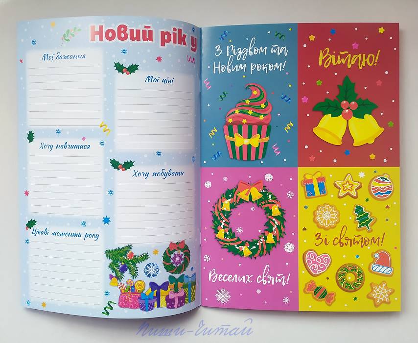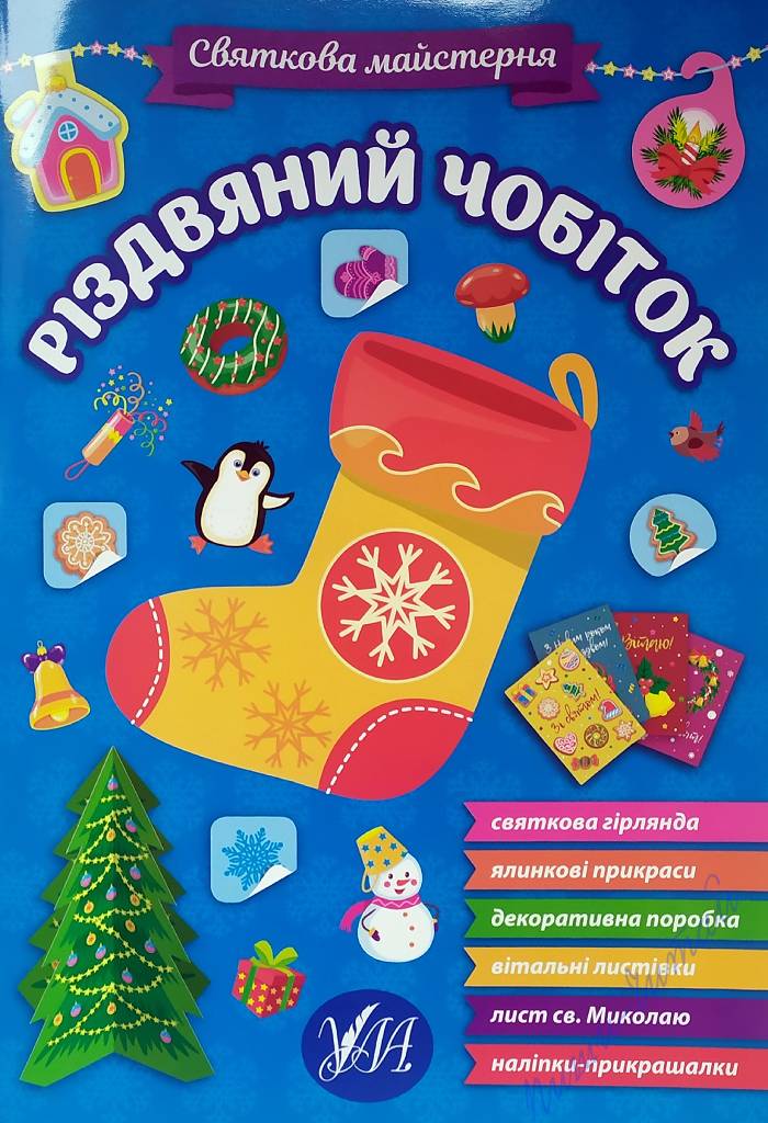 З книжками нової серії видавництва УЛА «Святкова майстерня» Ваша дитина якнайкраще підготується до святкування найочікуваніших зимових свят! Із виготовленими власноруч гірляндами, фігурками і прикрасами Ваша оселя набуде чудової святкової атмосфери. Рідні, близькі та друзі щиро зрадіють оригінальним вітальним листівкам. Складаючи лист Святому Миколаю, дитина замислиться над тим, чого б вона хотіла найсильніше. У дитячій кімнаті з'явиться гарний плакат-анкета, яку дитина заповнюватиме протягом року ( «Мої бажання», «Мої цілі», «Хочу навчитися», «Мої подяки», «Я та моя країна», «Мої ідеї», «Я та мої друзі», «Хочу побувати», «Я та моя родина», «Цікаві моменти року»). Із книжкою «Різдвяний чобіток» майструємо святкову гірлянду, оформлюємо чотири вітальні листівки («Зі святом!», «Веселих свят!», «Вітаю!», «З Різдвом та Новим роком»), вирізаємо і складаємо фігурки двох прикрашених ялинок, склеюємо конверт для листа Святому Миколаю, прикрашаємо наліпками подарунки для рідних та друзів. Книга рекомендована для спільної роботи дорослих з дітьми дошкільного та молодшого шкільного віку. Висока якість поліграфії, повнокольорове видання, цупкий папір сторінок із елементами саморобок, наліпки м'яка обкладинка (глянцевий картон). Книга українською мовою