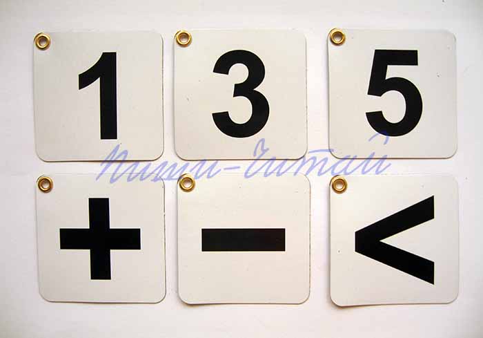 Дидактичний демонстраційний матеріал призначений для навчання дітей в закладах дошкільної освіти, центрах розвитку та початкових школах, використовується на великій шкільній дошці. Доповнює і реалізує навчання дошкільників і учнів школи за будь-якою програмою, робить пояснення викладача більш зрозумілими, сприяє запам’ятовуванню цифр і математичних знаків, допомагає опанувати навички лічби, порівняння, розв’язання прикладів та задач, використовується окремо або разом з набором лічильного матеріалу, наприклад, http://www.pishi-chitay.com.ua/book/schetnyj-material-1-demonstratsionnyj-nabor . Кожна картка набору на магнітній основі (навчальний магніт), легка за вагою, приємна на дотик, безпечна для дитини і дорослого. Матеріал верхньої частини картки (із нанесеним зображенням) міцний і легко миється. Навчальні демонстраційні магніти мають товщину 3мм і виготовляються у двох розмірах: 70*70 мм и 95*95мм (ціну за комплект карток відповідного розміру вказано нижче, в коментарях до замовлення просимо вказати обраний розмір). В кутку кожної картки є невеликий отвір, оброблений металевим пістоном, - для більш легкого її відокремлення від магнітної дошки та для можливого зберігання набору на штирі. У набір входять картки: цифри 0, 1, 2, 3, 4, 5, 6, 7, 8, 9, 10, знаки: =, <, >, +, -, кожного виду по 2шт. Всього 32 картки (навчальні магніти). В наборі розміром 95*95мм картки з цифрами мають розмір 95*95мм, а картки з математичними знаками 70*70мм. В наборі 70*70мм всі картки однакового розміру. Ціна одного набору: 385.00грн (розмір 95*95мм) / 269.00грн (розмір 70*70мм), при купівлі двох і більше однакових наборів ціна становить – 346,50грн (розмір 95*95мм) / 242,10грн (розмір 70*70мм)