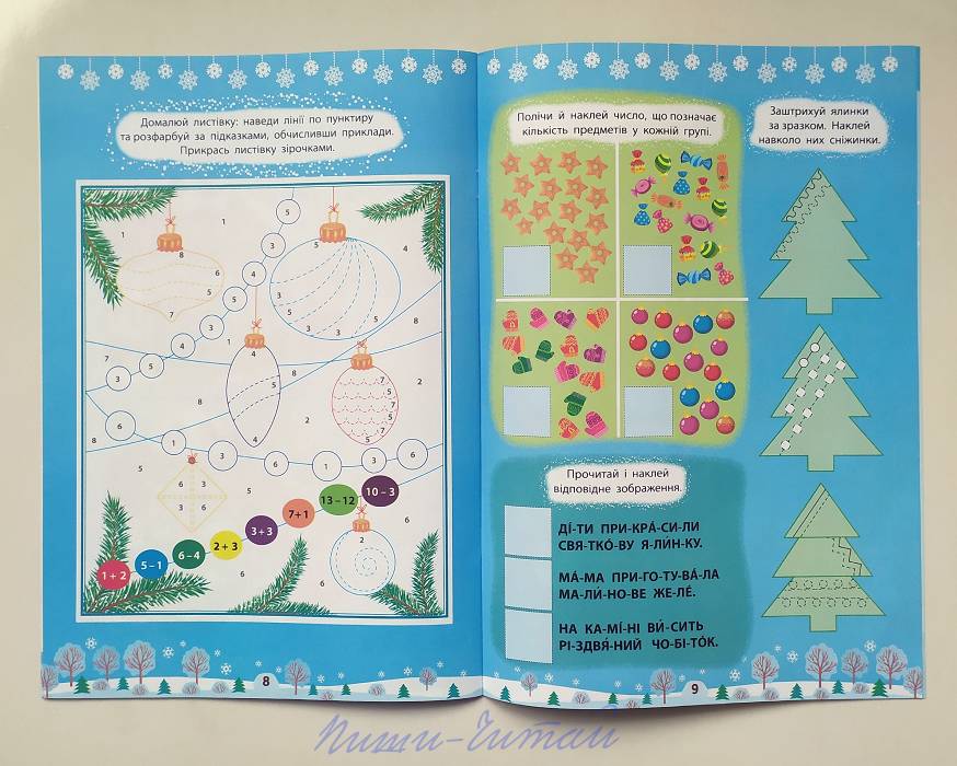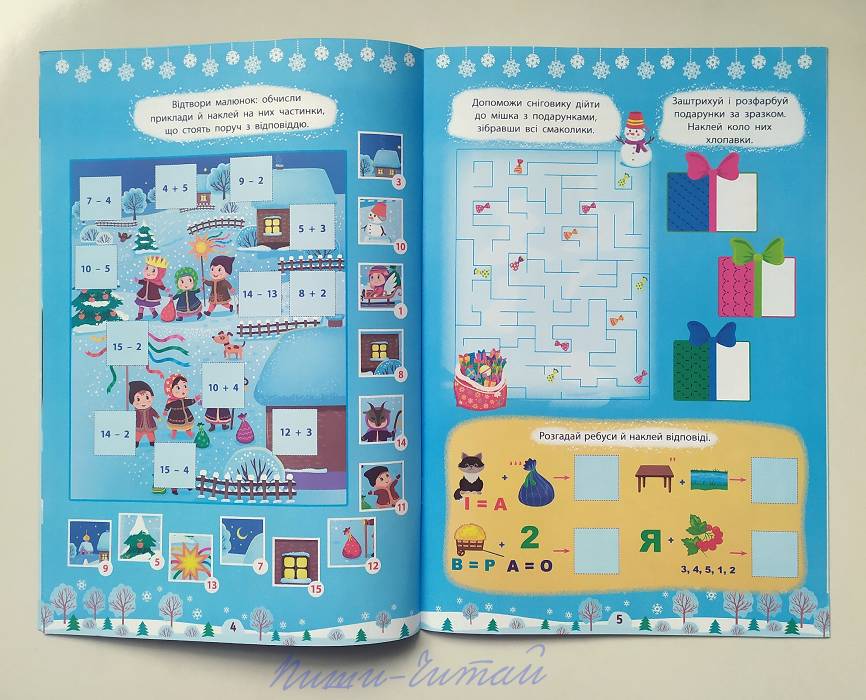 Книжки серії «Зимові активіті» - чудова ідея для подарунка дитині молодшого шкільного і старшого дошкільного віку: даруйте книжечки дітям у садку і у школі, купуйте своїй дитині з нагоди свята і просто як невеличкий сюрприз, даруйте дітям ваших друзів при зустрічі, і всім-всім дітлахам, щоб занурити їх в атмосферу свята. Книги допоможуть організувати дозвілля дітей у період зимових свят, під час канікул і кожного зимового дня. Кожна книжка містить ігрові завдання, частина яких виконується за допомогою наліпок, які розміщені всередині книги, а також гру-ходилку (на зворотньому боці обкладинки), розмальовку і наліпки різдвяної тематики, які можна використовувати на власний розсуд. Ігрові завдання книги «Цікаві забавки»: вправи на читання, розв'язування математичних прикладів, малювання по точках, розфарбовування за зразком, штрихування, судоку, завдання «знайди та покажи», «проведи доріжкою», «знайди відмінності», доповнення зображень наліпками, знаходження тіні, лабіринт, ребус, кросворд. Книгу рекомендовано для спільної роботи з дітьми дошкільного віку, діти молодшого шкільного віку зможуть виконати завдання самостійно. Книга українською мовою, висока якість поліграфії, м'яка глянцева обкладинка, повноколірне видання.