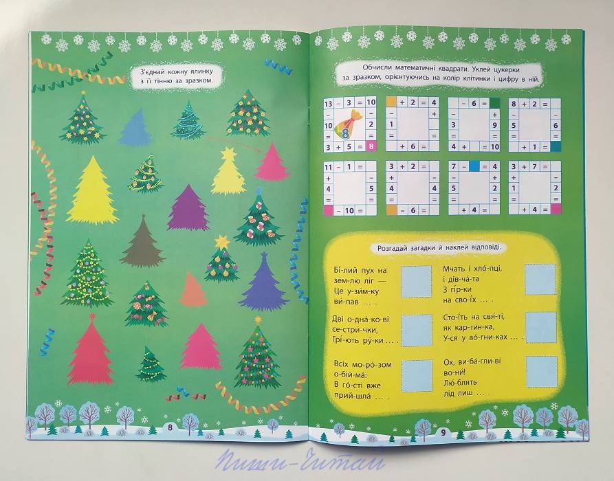 Книжки серії «Зимові активіті» - чудова ідея для подарунка дитині молодшого шкільного і старшого дошкільного віку: даруйте книжечки дітям у садку і у школі, купуйте своїй дитині з нагоди свята і просто як невеличкий сюрприз, даруйте дітям ваших друзів при зустрічі, і всім-всім дітлахам, щоб занурити їх в атмосферу свята. Книги допоможуть організувати дозвілля дітей у період зимових свят, під час канікул і кожного зимового дня. Кожна книжка містить ігрові завдання, частина яких виконується за допомогою наліпок, які розміщені всередині книги, а також гру-ходилку (на зворотньому боці обкладинки), розмальовку і наліпки різдвяної тематики, які можна використовувати на власний розсуд. Ігрові завдання книги «Веселі розваги»: вправи на читання по складах, загадки, розв'язування математичних прикладів, розмальовування за зразком, наведення ліній по пунктиру, завдання «проведи доріжкою», встановлення послідовності, доповнення наліпками малюнка, знаходження тіні, завдання «знайди та покажи», судоку, кросворд. Книгу рекомендовано для спільної роботи з дітьми дошкільного віку, діти молодшого шкільного віку зможуть виконати завдання самостійно. Книга українською мовою, висока якість поліграфії, м'яка глянцева обкладинка, повноколірне видання.